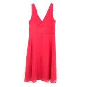 J Crew Sz 6 Petite Dress Pink 100% Silk Sleeveless V Neck Crossover A Line Midi