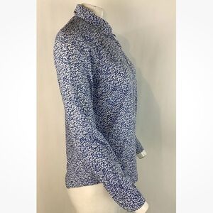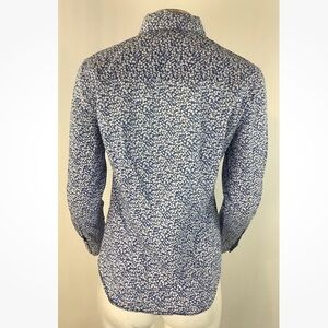J Crew Sz 8 100% Cotton Floral Print Button Boy Shirt Blue Long Sleeve
