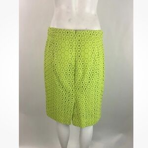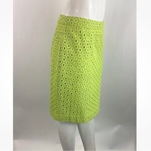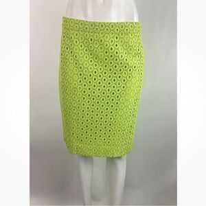 J. Crew Sz 8 All Over Eyelet Pencil Skirt Neon Green 100% Cotton Business
