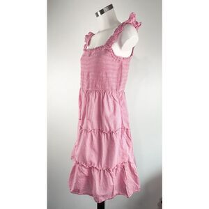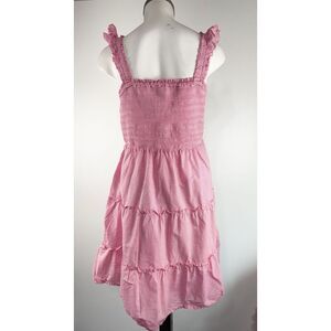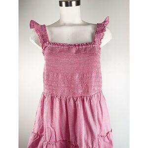 J Crew Sz Large Striped Smocked Tiered Mini Dress Pink Nautical Preppy Americana