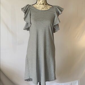 J. Crew Sz XS Striped Cotton Dress w/ Ruffles. Good used condition. Pit to Pit 18” Length 34”