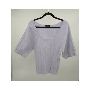 J. Crew T-Shirt Top XL Square Neck Elbow Sleeve Ribbed Stretch Casual Lavender