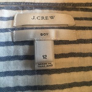 J Crew boy shirt style Size 12. Tailored fit. Cotton, long sleeves, chest pocket, Shaped with seams at the bust fora more feminine fit and tailored. Super soft stripe suckered cotton. Like new worn one time.
