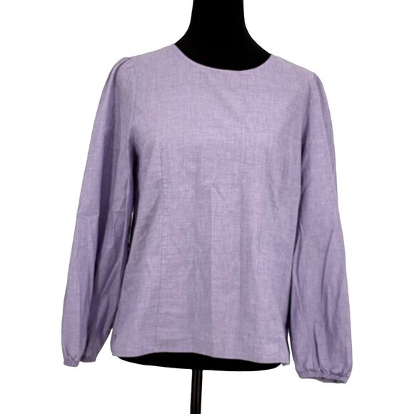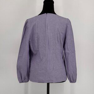 J Crew Tailored Shirt Womens 10 Long Sleeve Blue Chambray Puff Sleeve Zip Back
