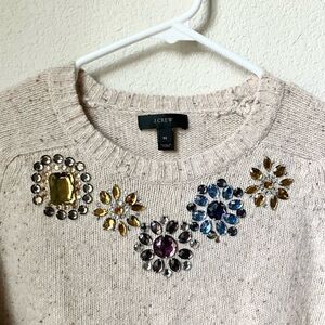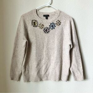 J. Crew Tan Boiled Lambs Wool Gem Grannycore Vintage Inspired Crewneck Sweater
