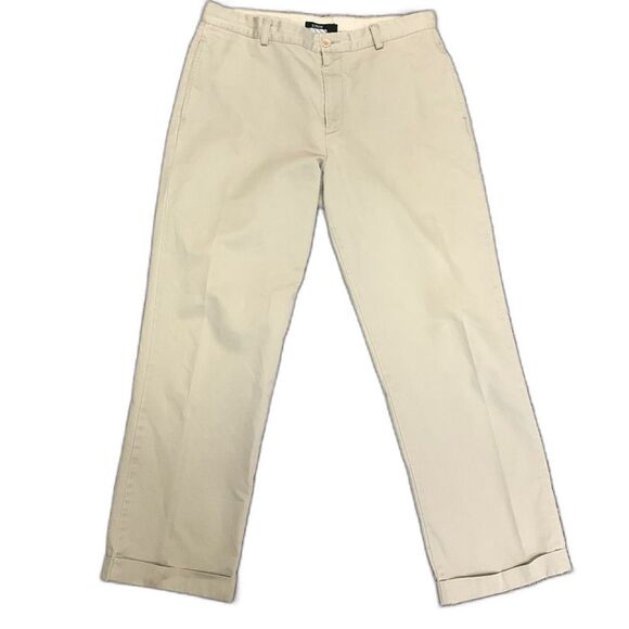J. Crew Tan Flat Front Cuffed Straight Leg Chino Pants Size 35 X 31