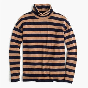 J. Crew Tan Navy Blue Deck Striped Lightweight Turtleneck Top Size Small