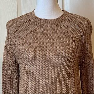 J Crew Tan Open Weave Relaxed Fit Linen Beach Sweater Size XSmall