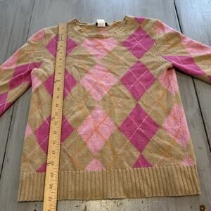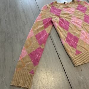 J Crew Tan Pink Argyle Sweater Women’s Sz S Merino Wool Angora Academia Preppy