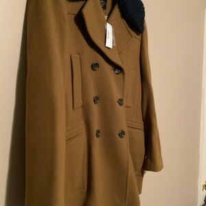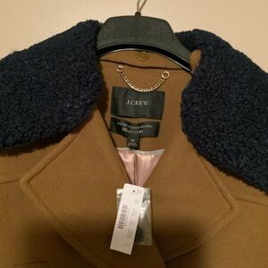 ✨J. Crew Tan Ready to Wear Double-Breasted Peacoat Coat w/Shearling Collar BNWT✨