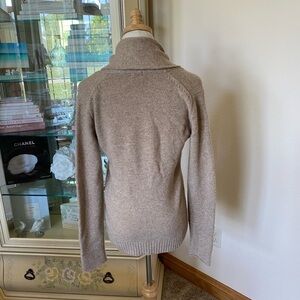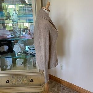 J. Crew Tan Sweater Shawl Collar w/ Leather Front Button Size S Wool Cashmere