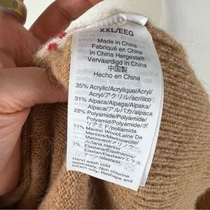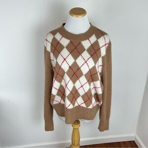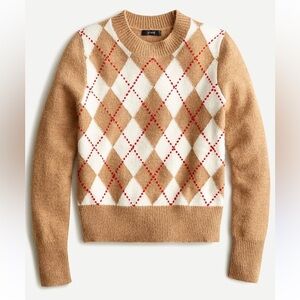 J. Crew Tan & White Alpaca Merino Wool Argyle Crop Crewneck Sweater Size XXL