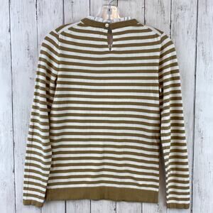 J. Crew Tan White Striped Ruffle-Trim Cotton Sweater AW351 Size X-Small Preppy