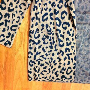 J Crew Tan and Black Animal Print Sweater Long Coat Cardigan Size XS