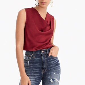 J Crew Tank Top Womens XXS Burgundy Draped Cowl Neck Sleeveless Blouse Shirt New