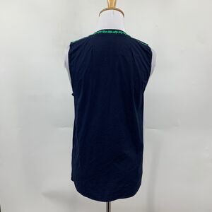 J Crew Tank Womens 0 Navy Green Embroidered Bib Tassel Keyhole Sleeveless Top