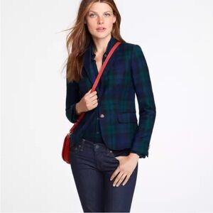 J. Crew Tartan Plaid Leather Elbow Patch Wool Blazer Blue Green Holiday sz 4