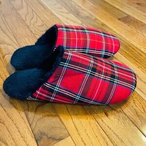J. Crew Tartan Plaid Sherpa Lined Slippers Red Size 10