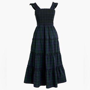 Adorable j crew tartan plaid cotton smocked tiered midi nap dress. Never been worn, with tags attached. 98% cotton 2% elastane. Pullover style. Flexible fit due to smocked bodice. Machine washable. Midi length.