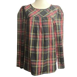 J. Crew Tartan puff-sleeve top in stretch poplin Size Medium