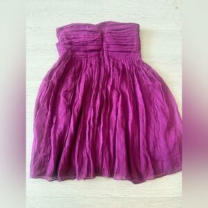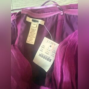 The J Crew Taryn Empire Cut Mini Swing Party Cocktail Dress is a formal and elegant option for special occasions. Made from luxurious silk, this dress in a stunning purple color exudes sophistication and style. Designed for petites in size 12P, it features a short length, making it a perfect choice for a party or cocktail event. With its flattering empire cut and mesmerizing silk material, this dress is sure to make a statement and turn heads wherever you go.