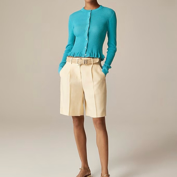 J. Crew Teal Ruffle Trim Cotton Gauze Cardigan small