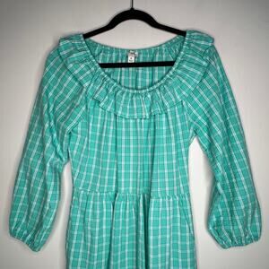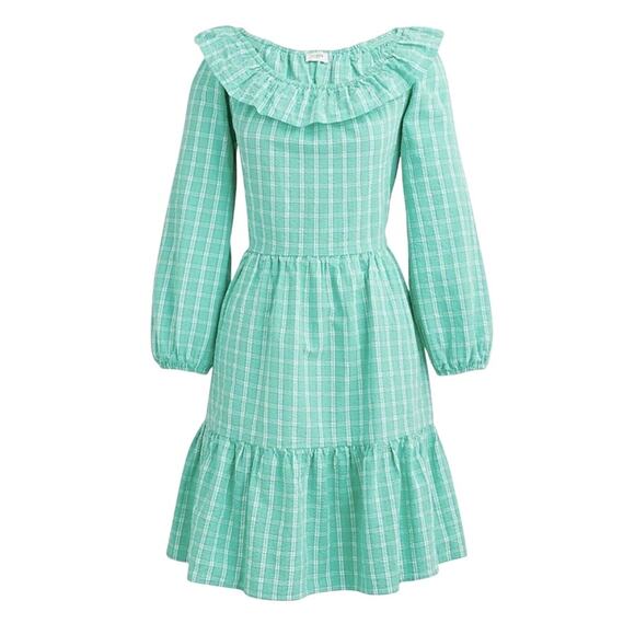 J. Crew Teal Seersucker Plaid Ruffle Mini Dress Size 8