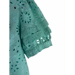 J. Crew Teal eyelet button up top- size s