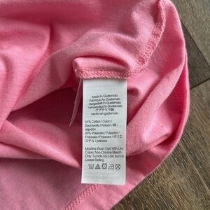 J. Crew Tee Shirt and Black Shorts. Shorts are size 28, shirt size medium. Shorts inseam measures approximately 3”, rise measures approximately 10.5” and waist measures approximately 15.25” when lying flat. Pink tee shirt measures approximately 20” and shoulder to hem approximately 27.5”. Both are in great condition!