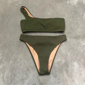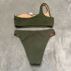 J. Crew Textured 2-Piece Set Bikini Top & Bottom/Green Size Medium
