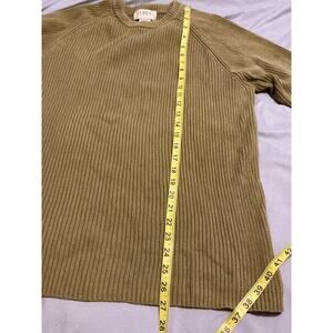 The J. Crew Textured Crewneck Sweater in size L for men is a stylish and versatile option for casual occasions during the winter and fall seasons. Made from a blend of cotton, nylon, and spandex, this solid yellow-brown sweater features a tight-knit design with a crew neck and long sleeves, providing comfort and warmth. The pullover style and regular fit make it easy to wear and care for, as it is machine washable. Perfect for walking and everyday wear, this J.Crew sweater is a classic choice for any wardrobe.