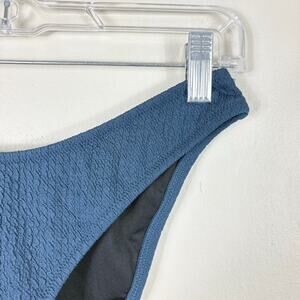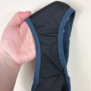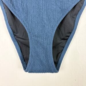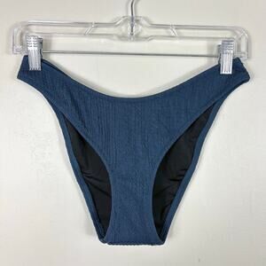 J. Crew Textured Mid Rise Curved Waist Cheeky Bikini Bottom in Deep Midnight