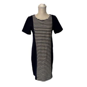 J. Crew Textured Striped Colorblock Casual Shift Dress in Navy & White Size 6