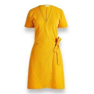 J. Crew Textured Wrap-Style Short Sleeve Yellow Mustard Dress