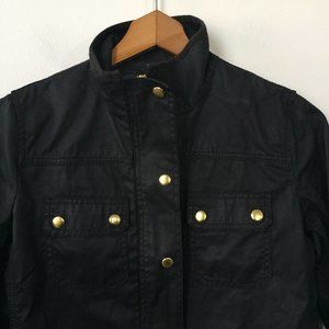 The quintessential cool-girl jacket (aka every girl needs one). In waxed cotton with military-inspired pockets and snaps, this is our idea of standard issue.