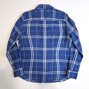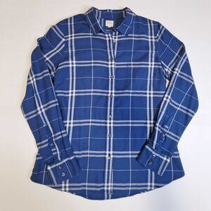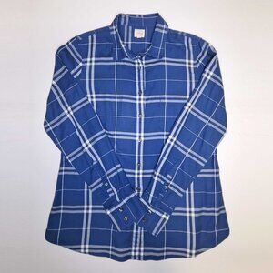 J Crew The Perfect Shirt Cotton Flannel Button Navy Blue Plaid Blouse - M