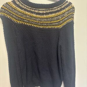 J Crew The Reeds Navy & Gold Detailed Sweater