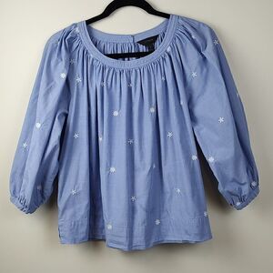 J. Crew The Perfect Embroidered Chambray Cotton Blouse Top Puff Sleeves Size S