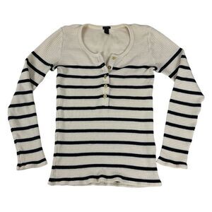 J. Crew Thermal Henley Stripe Tee with Gold Button detail