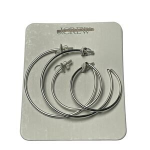 J.‎ Crew Thin Hoop Metallic Silver Earrings (Set of Two) NWT