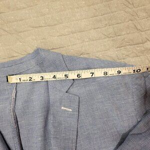 The jacket is a great choice for summer wear, suitable for both work and casual outings.Overall, a stylish option for those looking for a summer jacket. Lined Sleaves, double rear flaps, several inside pockets. Slim fit, Navy and White check.