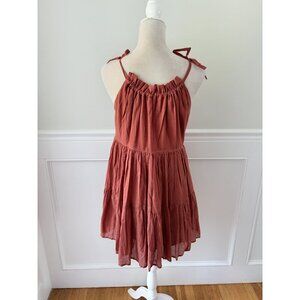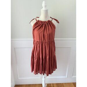 J. Crew Tie Shoulder Tiered Mini Dress XS Burnt Orange Cotton Blend
