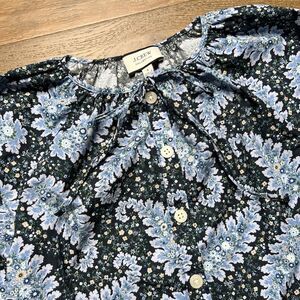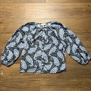 J. Crew Collection Blue Floral Paisley Print Peasant Button Down Blouse / Top
