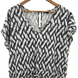 J. Crew Tie Waist Linen Blend Ikat Print Lightweight V-neck Romper Size XL