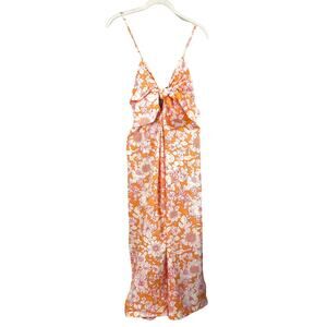 J Crew Tie-Front Cotton Poplin Midi Dress in Orange Floral Women's L NEW