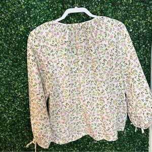 J Crew Tie-Sleeve Button-Front Poplin Top Meadow Floral Size M