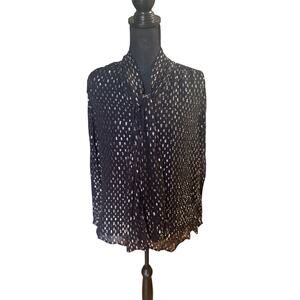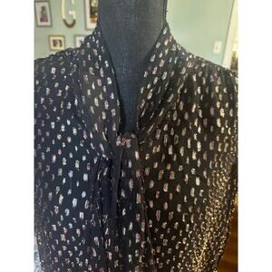 shimmery button-up features a pretty tie at the neck and a touch of Lurex throughout for extra festive vibes. P.S. It comes with a camisole so just the right amount of skin shows through.