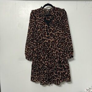 J Crew Tie-neck tiered dress in leopard crinkle chiffon dress Size Small
