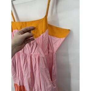 J. Crew Tiered Colorblock Midi Dress Women 12 Sherbet Pink Peach Peasant Prairie