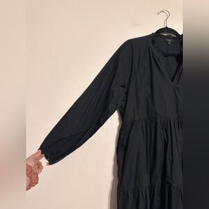 J. Crew Tiered Cotton Popover Long Sleeve Dress Black size Large